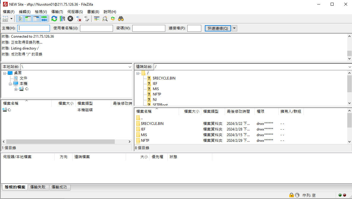 3.檔案協定:SFTP 主機:211.75.126.37(IEF) |