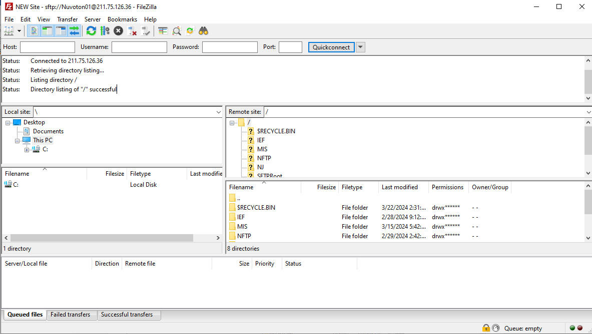 2.FileZilla SFTP Setting and operation(IEF Host:211.75.126.37)